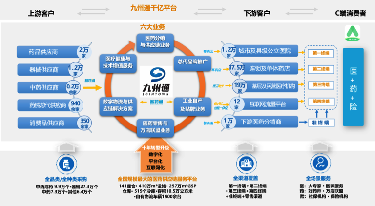 回複:您好!目前公司已建立了行業稀缺的千億醫藥供應鍊服務平台,其具有“全品類”、“全渠道”、“全場景”等優勢,主要體現在: