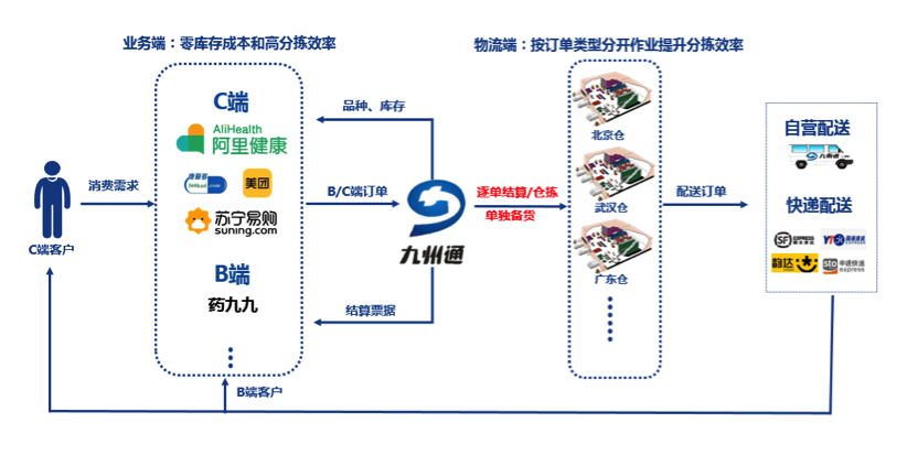 “萬店聯盟”作為服務C端用戶的前置倉,其庫存的商品一般有2,000-3,000個品規,可以滿足客戶急用藥的需求(一般可以在1小時送達);BC倉儲中心作為中心倉,其庫存的商品一般有2萬-5萬個品規,中心倉與萬店聯盟系統對接,可以滿足C端用戶隔日用藥需求。詳見公司披露的《2021年年度報告》。請投資者注意投資風險。